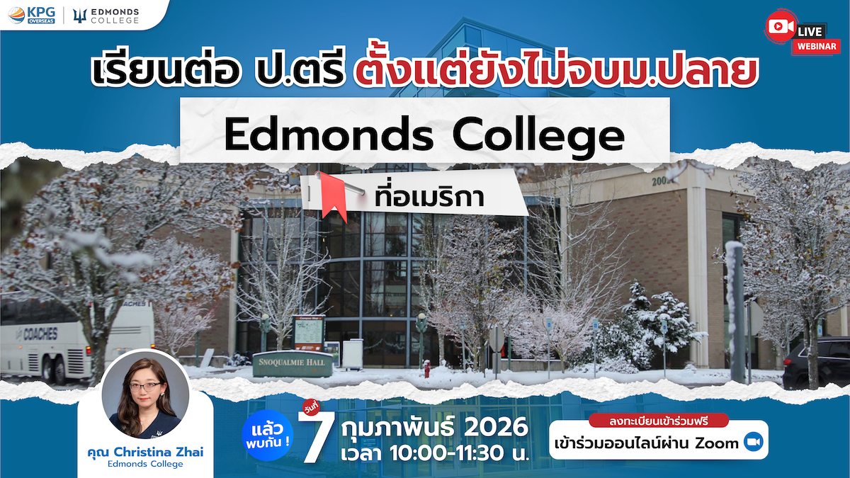 สัมมนาออนไลน์ เริ่มต้นเรียนต่อป.ตรีโดยที่ยังไม่จบม.ปลาย ที่ Edmonds College อเมริกา